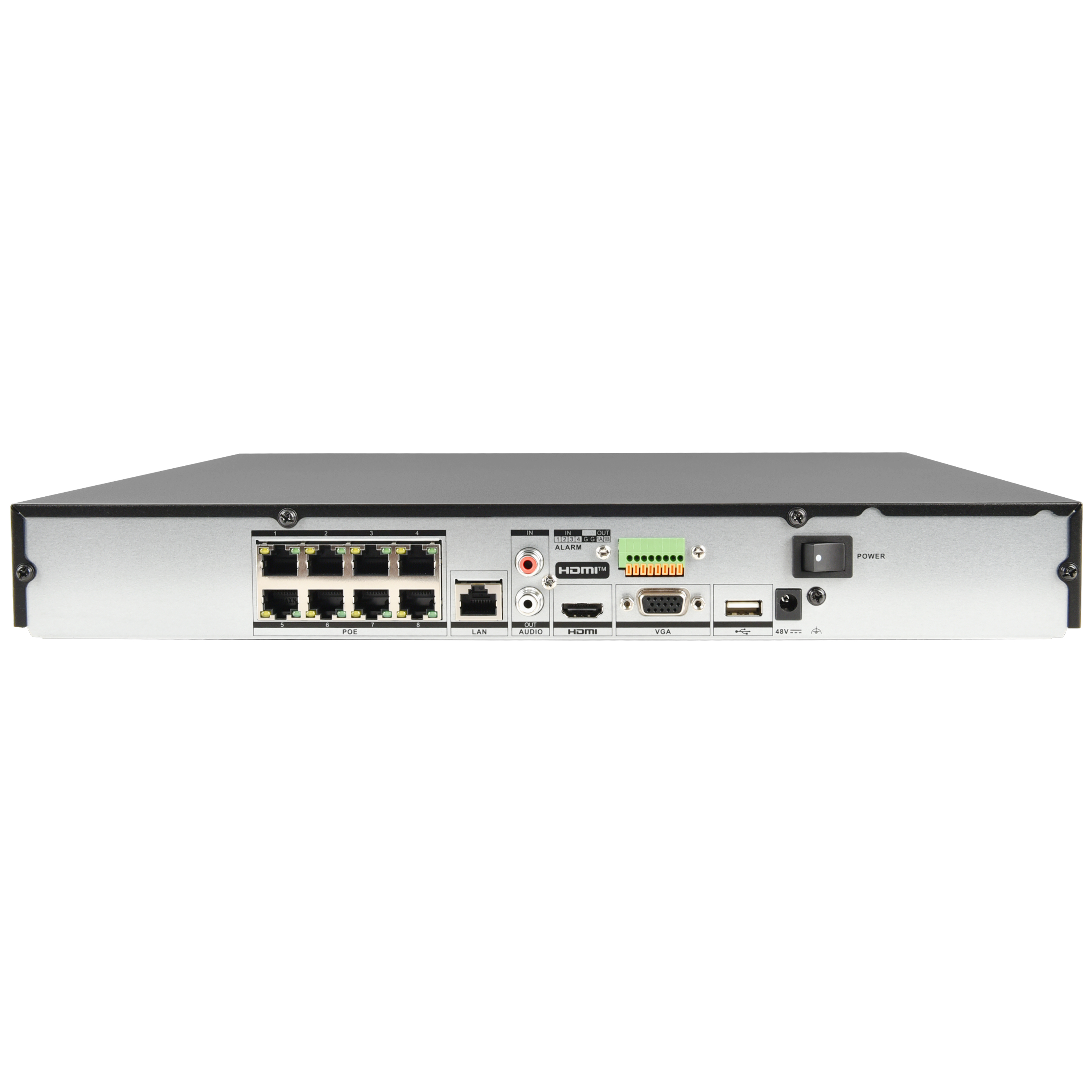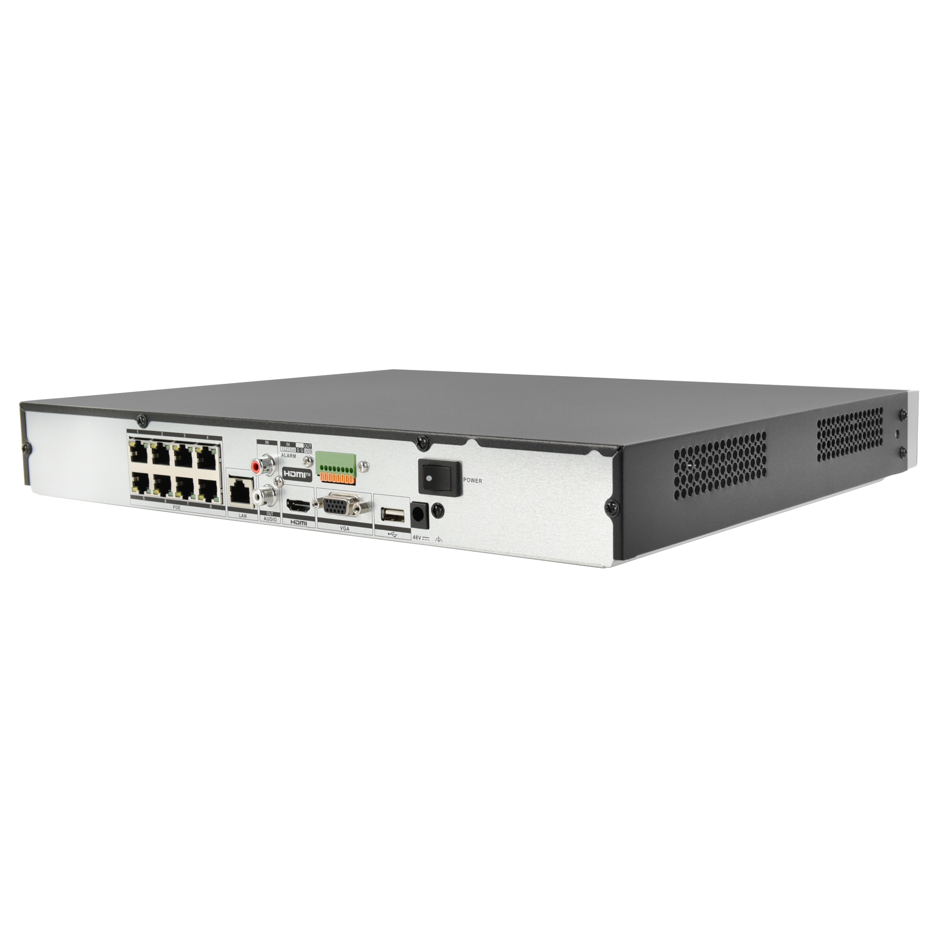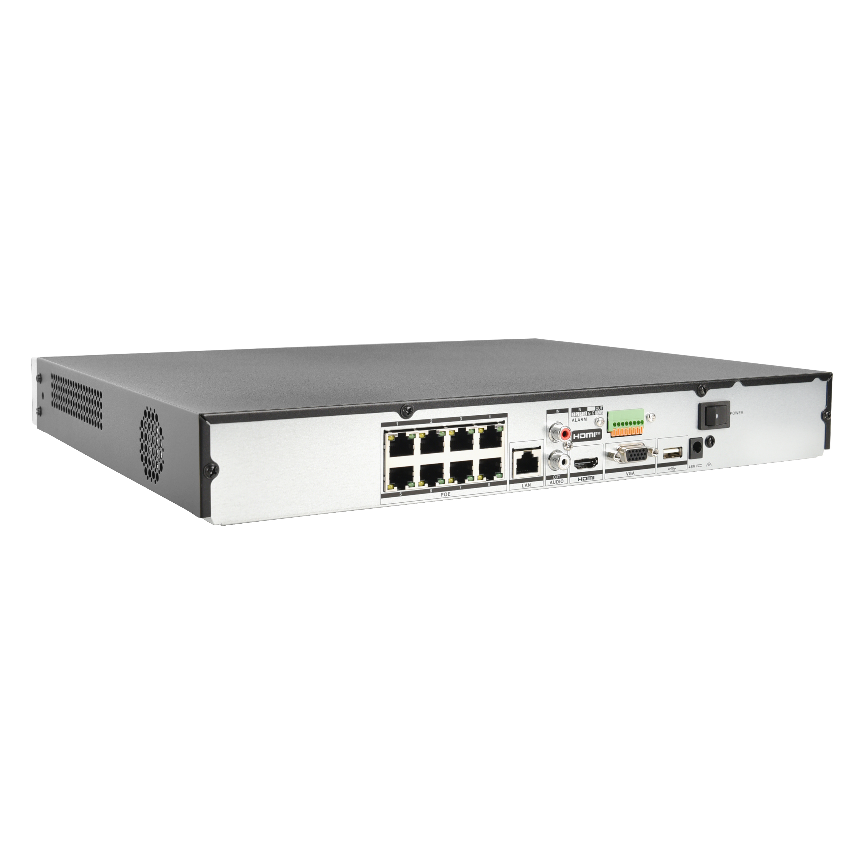 Up to 8-ch IP camera inputs, plug & play with 8 power-over-Ethernet (PoE) interfaces