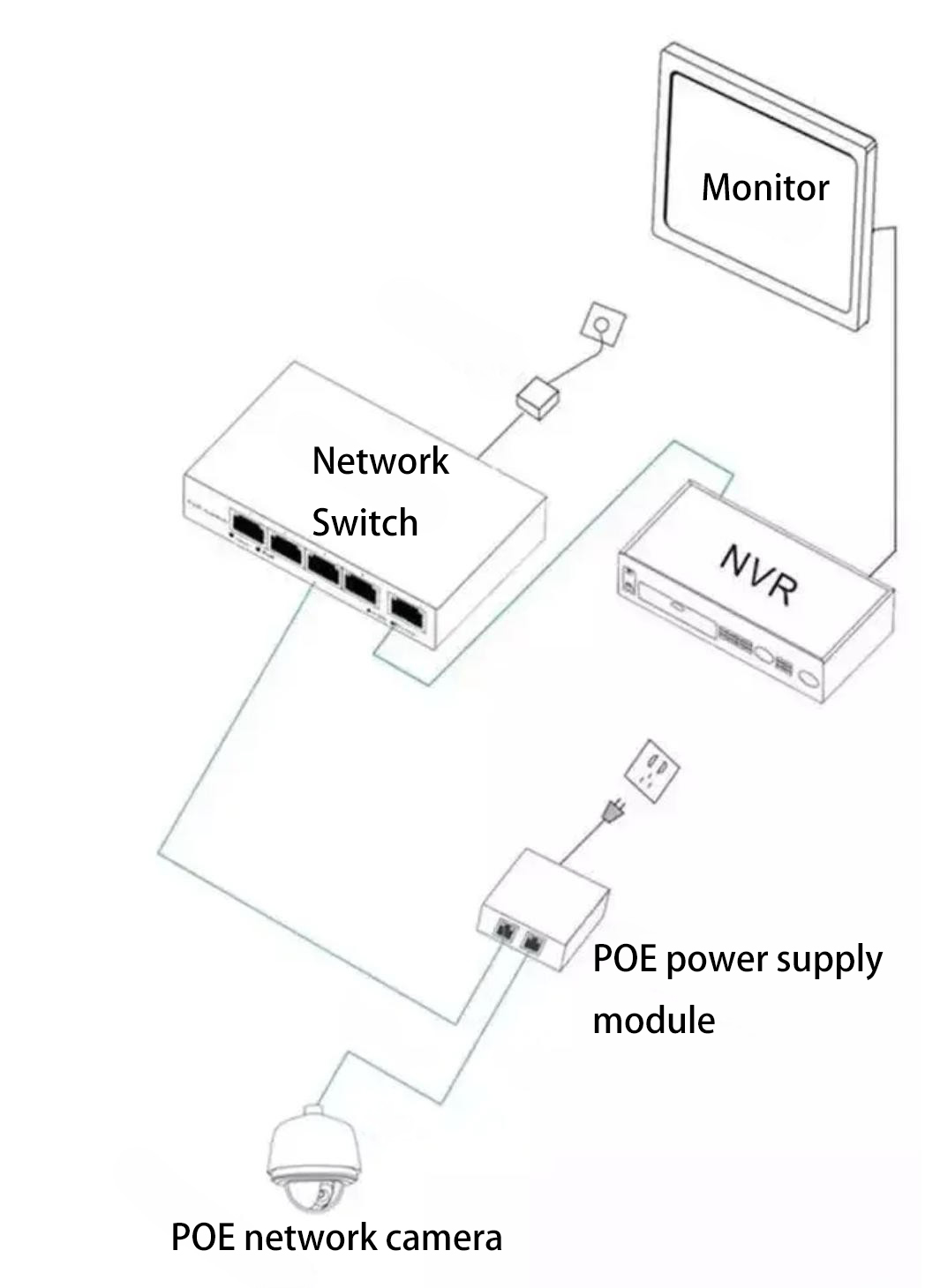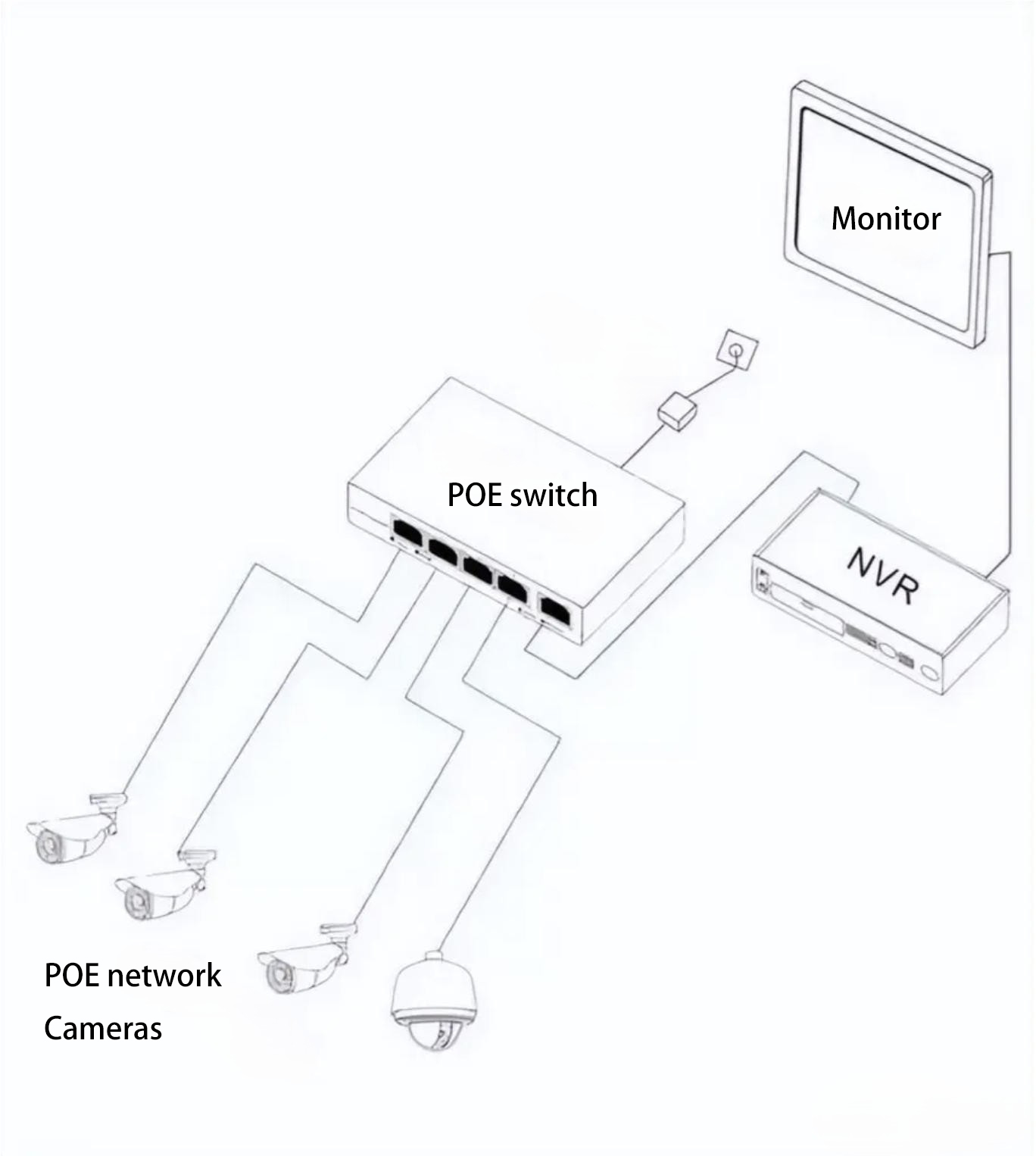 - A PoE switch connects directly to